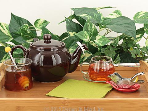 Scoops, strainers, scales, thermometers, and timers for making tea. Drip catchers, lemon wraps, paper coasters and doilies, and decorative napkins for serving tea. Kitchen tools to help prepare treats for your high tea.