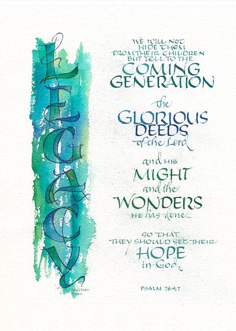 As parents and grandparents, we can think about the legacy we want to entrust to our children and grandchildren. We think about the tangible, physical things. How can we also be intentional with the intangible, relational things? We have a great spiritual legacy in God! We can pray that the generations to come will treasure God and his word and set their hope in him and Jesus Christ!