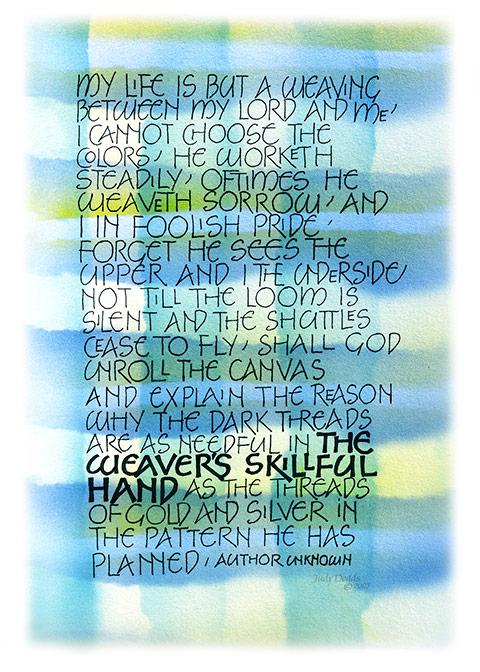 An artist uses contrast in many ways; one is through light and dark hues. We quickly learn that life is made of contrasts - including ups and downs, highs and lows. This poem says that our relationship with the Lord will have joy as well as sorrow. James 1:2-3 tells us, too, that there will be trials, but in holding fast to our faith in God, we will have all we need. Through hard times, God is wanting us to see him more fully, trust him even when we don't understand or see the reasons. He has our greatest good in mind.