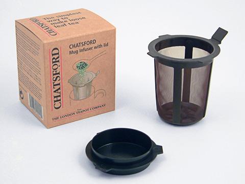 Chatsford Mug Infuser - Same great fine mesh nylon infuser that is provided with each Chatsford Teapot. Designed to sit on the rim of most common mug styles. Includes a lid to help keep heat in while brewing. Lid doubles as a drip tray when brewing is done.