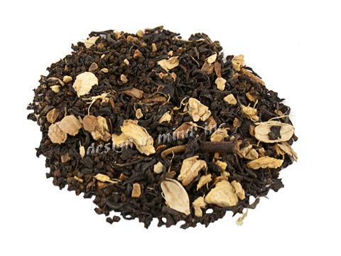 Black tea blended with ginger root, cinnamon, and green cardamom; and flavored with cinnamon, ginger and vanilla flavors. A milder version of our Pepper Chai loose tea.