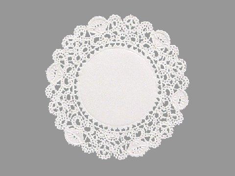 Assorted round paper doilies. Pack contains 12 each of 4, 8, and 10 inch rounds.