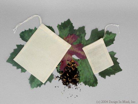 Designed for use as bouquet garni, these reuseable cotton bags can be used for infusing tea as well. Small bag is 2.5 x 3.5 inches and will infuse up to a 3 cup pot. Large bag is 5 x 6 inches and will infuse a 6 to 8 cup pot.