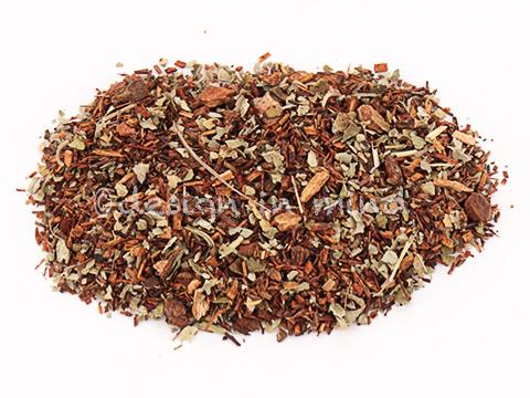 A blend of Rooibos, wild cherry bark, blackberry leaf, and flavor extracts. Caffeine free Rooibos with a hint of apple flavor and an apple aroma.