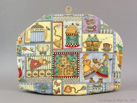 Tea parties abound.. little girls, bees, birds, and teapots in soft greens, cream, and other accent colors.