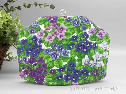 Shades of blue and purple violets with green follage on an off white quilter's cotton. This pattern coordinates with QT119, Cuppa Violets, in the Teapots in Print group.