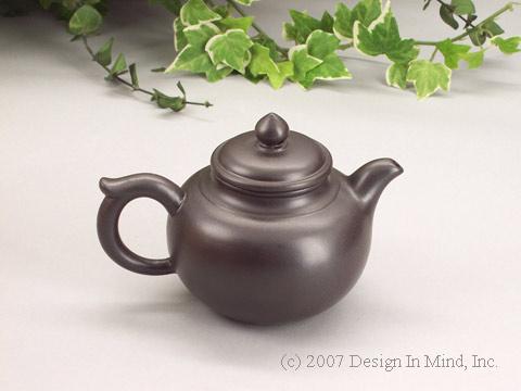 This wonderful petite Yixing teapot is deep brown and has an internal strainer. 5.25"w x 3.5"h x 3.5"d. Holds 7 oz.