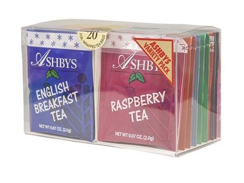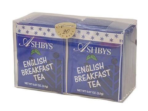 Ashbys of London tea bags are individually poly-wrapped to prevent air and light exposure, the main causes of deterioration. Ashbys teas are sold in 20 count clear acetate boxes.