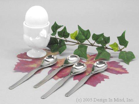 Attractive stainless steel egg spoons go well with the egg cups below. Also make a nice small teaspoon.