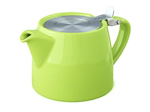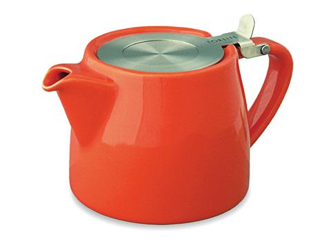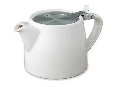 The Forlife Stump teapots hold 16 ounces and come with a fine mesh stainless steel infuser. The Stump teapot includes a permanently attached stainless steel lid that tips back for adding tea and water. We love the spout on these for dripless serving! They can be stacked for storage and are ideal for restaurant use!