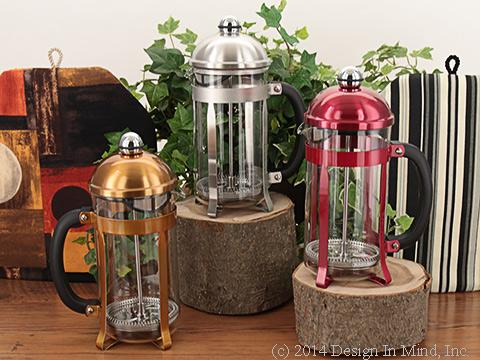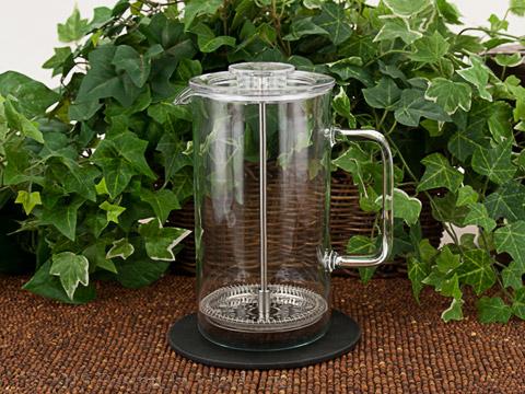 Place ground coffee or loose leaf tea in the carafe, add hot water, and set the plunger partially down. When ready, fully depress the plunger to stop infusion. The brew is ready to pour without removing the top and plunger.