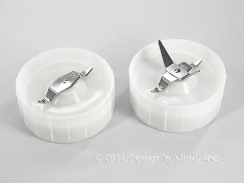 Stainless steel replacement blades for the Tribest personal blender. 2-prong grinding blade or 4-prong blending blade.