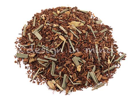 A sweet, full bodied, blend of South African Rooibos, ginger root, cinnamon and lemon grass. Aromatic and smooth! Great plain or with milk. Caffeine free Chai!