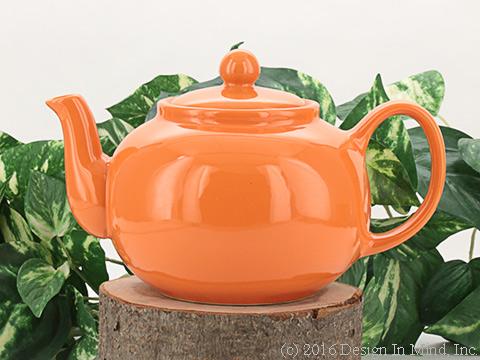 Wonderful, bright orange RSVP stoneware brown betty teapot, Use the Finum large infuser, or T-sac size 3 or 4 paper tea filters. Made in China.