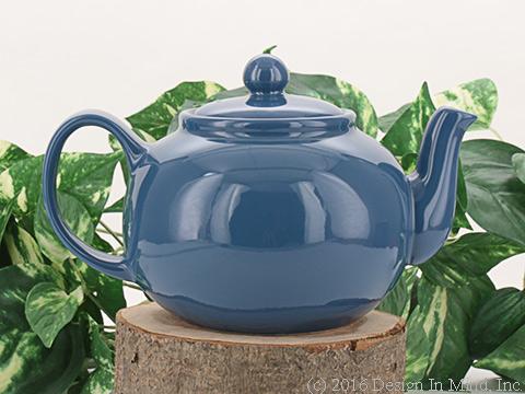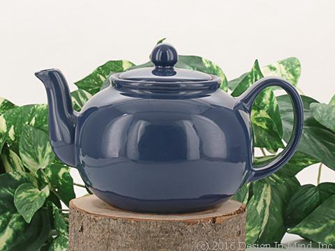 Wonderful "Brown Betty" style teapot in dark blue. Stoneware, made in China. Use a large size Tea Quilt Tea Cozy. Accepts the Finum large infuser. 48 oz.