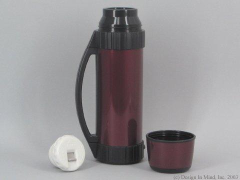 A 1 liter all stainless vacuum bottle with push button pour! New TUFF series design is smaller and lighter than many other 1 quart stainless bottles. Unique handle is designed to prevent rolling, even when full! Non-stick interior makes it easy to clean and protects the flavor of your tea! About 11 inches high and 3.25 inches diameter.